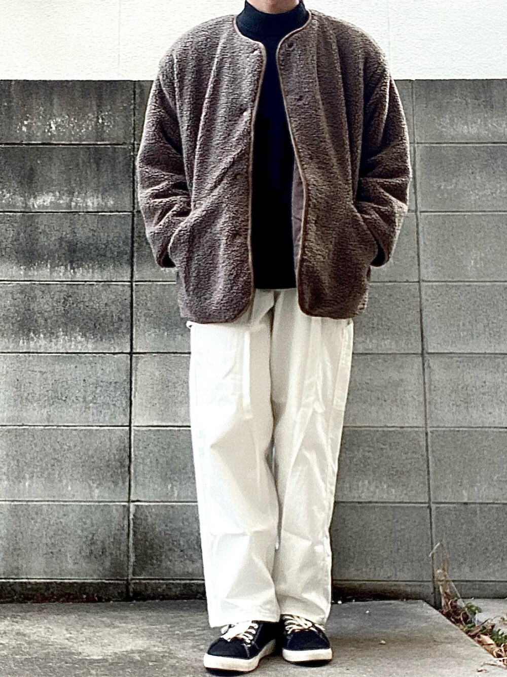 シータケのニット/セーター「【Like Us】モックネックダブルリブルーズプルオーバーニット」を使ったコーディネート