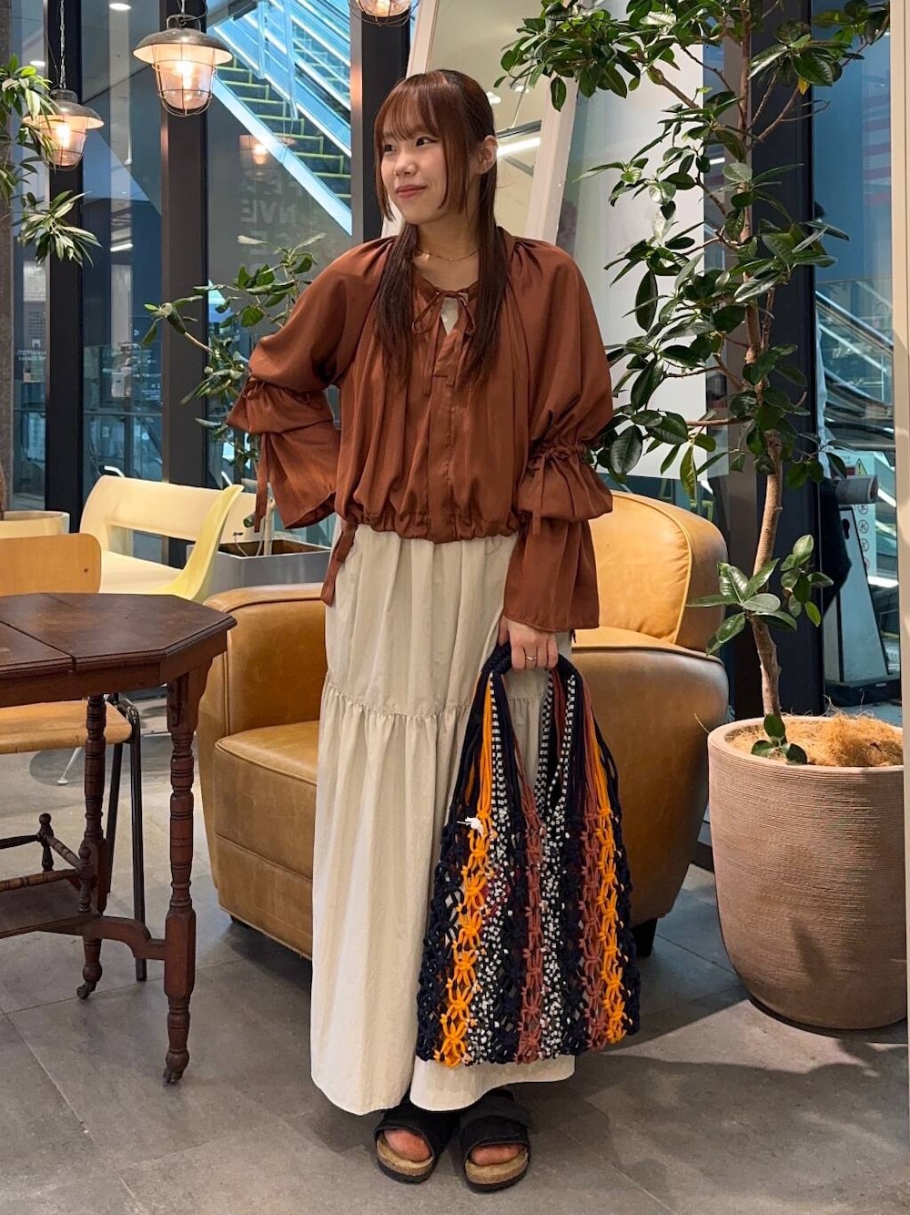cwtchのキャンディースリーブブラウスをワンピースと合わせました★こういうスタイリングしても可愛いです♩ 袖だけじゃなく裾も絞れるので、ふわっと広がるスカートやワンピースと合わせてもメリハリがついて相性抜群です!