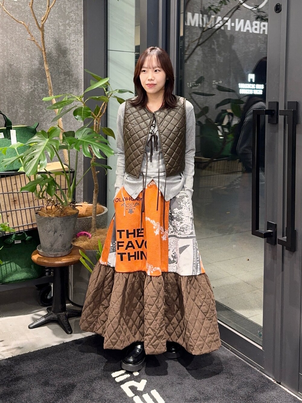 なによりスカートが可愛すぎる、、コーデです❄️ 広がりが大きいスカートなので、トップスはタイトめのものがオススメ☑️