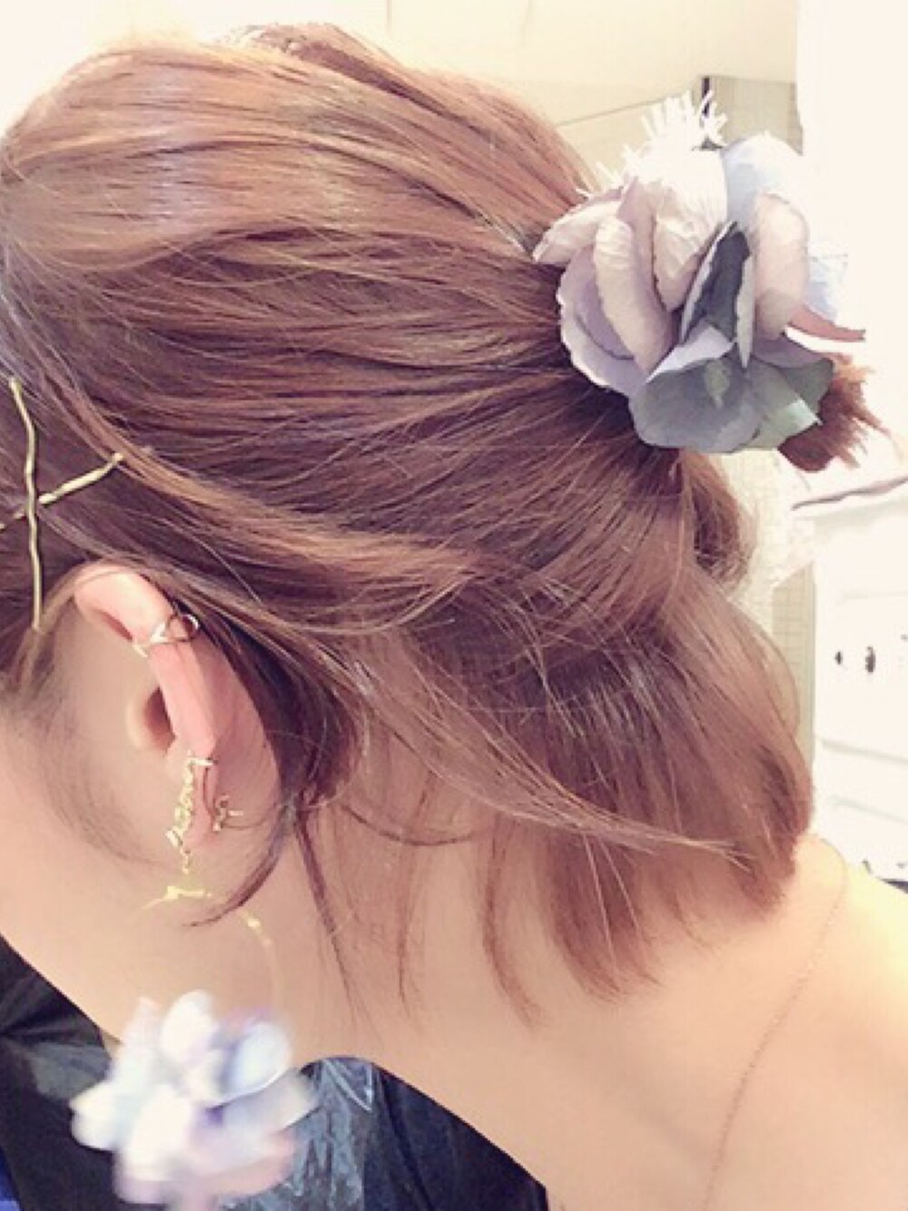 後頭部の髪の毛をくるくるして襟足と一緒に結んでちっちゃいお団子にするだけ。 後れ毛はシカト。