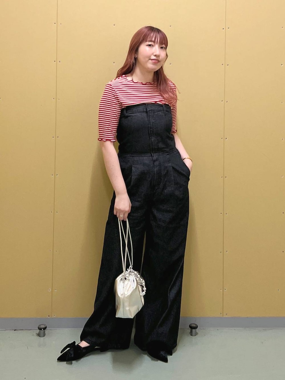 大人カジュアルコーデ🍒 【トップス】Fサイズ 伸縮性がある生地なので、 着心地抜群のトップスです! 首元や袖口がメローデザインなのも可愛いポイント♡ ボーダー柄がポイントになるので、 シンプルなお洋服との相性も抜群ですよ♪ 【サロペット】Fサイズ(リアルバイ) リアルバイしたサロペット! 肩紐付きで、ベアトップデザインでも、 ずれ落ちたりしにくいのがポイントです^^ 程よいゆったり感があって着やすく、 着痩せ効果抜群👏🏻 低身長の方は、裾をロールアップしていただくか、 ヒールや厚底サンダルで、 高さ出して履いていただくのがオススメ! → 【バッグ】 巾着型で取り出しもしやすいバッグ! ボールチェーンがコーデのポイントになりますし、 スマホショルダーとしても使える、 マルチウェイアイテム◎ 柔らかい生地なので、使いやすさ抜群ですよ✨ → 【パンプス】Mサイズ リボンが取り外しできるので、 シンプルなミュールとしても使っていただける シューズです♡ 足先もすっきりなので重く見えにくく、 ヒールが低めなので疲れにくいです◎ → ⭐︎instagramでも、日常を更新しています♪ → ⭐︎土岐店スタッフのスタイリングはこちら! →、