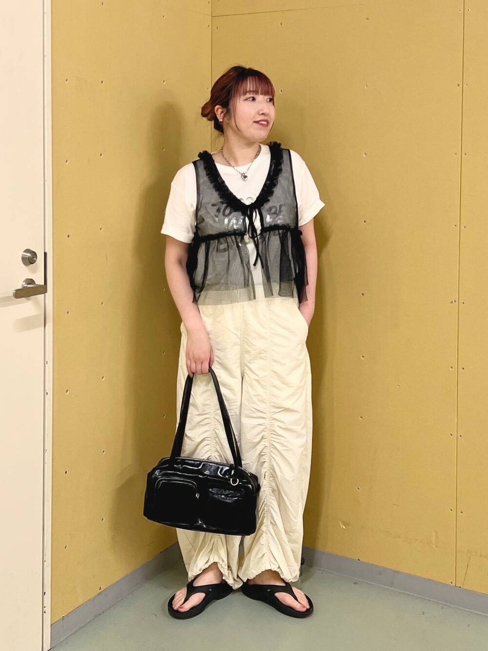 モノトーンコーデ! 【Tシャツ】Fサイズ(リアルバイ) ロゴがポイントになるTシャツ! 大きすぎないサイズ感で、 シャツなどとの重ね着もしやすいです◎ キャミワンピースや、オールインワンなどの インナー使いもオススメですよ! → 【ベスト】Fサイズ(リアルバイ) フリルベストとチュールTシャツがセットのアイテム! セットで着ても可愛いですし、 カジュアルめお好きな方は、 ベストをお持ちのTシャツと重ね着するのも オススメ♡ → 【パンツ】Fサイズ シャーリングデザインがポイントのカーゴパンツ! ポリエステル素材なので、シワにもなりにくい◎ ワイドめシルエットですが、 柔らかいナイロン生地で、裾も絞れるので、 スッキリ着ていただけます! 159cmだと、裾絞らずで丁度よく履ける丈感です^^ → 【バッグ】 今年らしいデザインが可愛い新作バッグ! ポケットがたくさんついているので、 収納力も抜群✨ 横長のバッグで、体の面積を減らしてくれるので、 細見え効果も🤭 → ⭐︎instagramでも、日常を更新しています♪ → ⭐︎土岐店スタッフのスタイリングはこちら! →、