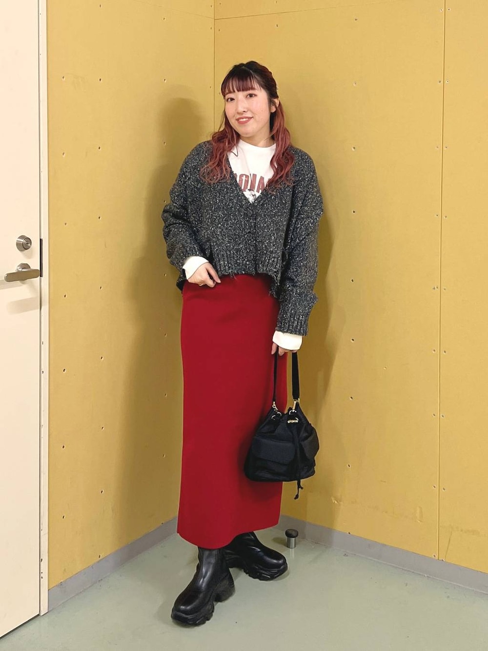 🖤グレー×レッドコーデ❤️ タイトスカートを合わせて、 細見えなスタイリングにしました◎ ⭐各アイテムのおすすめポイント  ̄ ̄ ̄ ̄ ̄ ̄ ̄ ̄ ̄ ̄ ̄ ̄ ̄ ̄ ̄ ̄ ̄ 【カーディガン】Fサイズ ショート丈のカーディガンなので、 ハイウエストのスカートで体型カバー! シアーインナーを合わせてきれいめなコーデや、 ロンTでカジュアルなスタイリングもオススメ💕 チクチクしない、 もっちりとした生地なのもポイントです◎ → 【スカート】Fサイズ スポンジのような生地で伸縮性があるので、 動きやすいタイトスカート! アイラインシルエットで、 程よくゆったりしているので、 体のラインが出にくいお作り◎👏🏻 オーバーサイズのニットやスウェットと、 バランスが取りやすいですよ! → ‥‥‥‥‥‥‥‥‥‥‥‥‥‥‥‥‥‥‥‥‥‥‥‥‥ ⭐︎instagramでも、日常を更新しています♪ → ⭐︎土岐店スタッフのスタイリングはこちら! →、