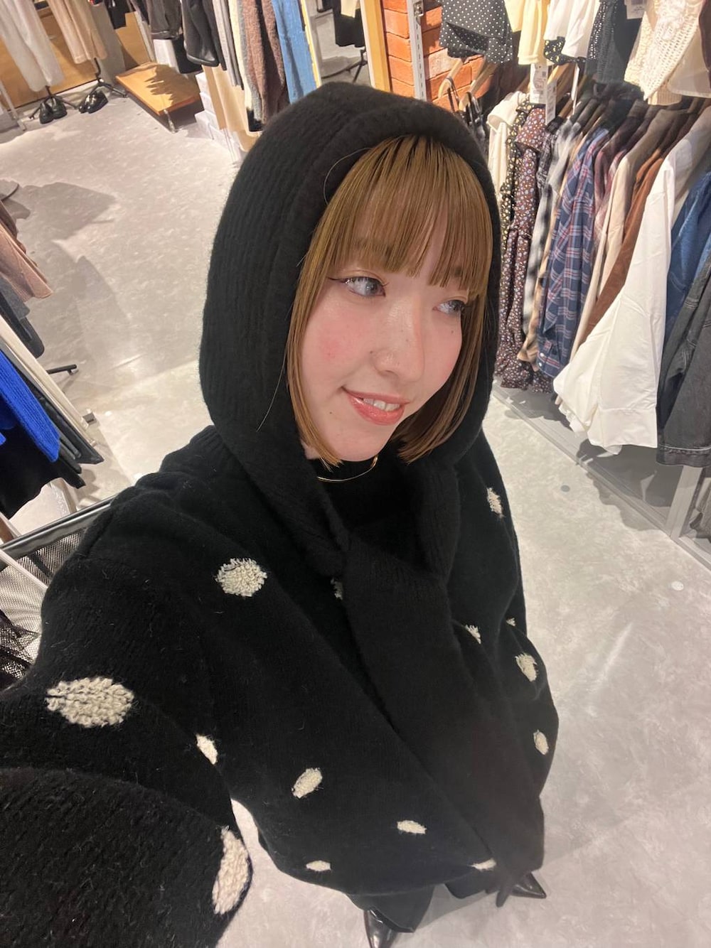 ブラックコーデ🖤 ⭐各アイテムのおすすめポイント  ̄ ̄ ̄ ̄ ̄ ̄ ̄ ̄ ̄ ̄ ̄ ̄ ̄ ̄ ̄ ̄ ̄ 【トップス】Fサイズ トレンドのドット柄がデザインされたニット! オーバーサイズですが、 袖と裾のリブがキュッとしているので、 そこまでだぼっと見え過ぎずに着られます◎ カジュアルめお好きな方は、 グレーかブラックがおすすめ🩶 【ボトムス】Lサイズ ワイドストレートのシルエットで、 華奢見えできるパンツ! 秋・冬仕様で弱起毛素材なので、 暖かく着ていただけます◎ ハイウエストなので、 インスタイルや短丈トップスとも相性抜群です✨ 【フードマフラー】Fサイズ フードとしても、マフラーとしても、帽子としても、 様々な使い方ができるフードマフラー! ふわふわのニット生地なので、 とっても暖かいです❤️🔥 私はブラウンをリアルバイ! 全色欲しくなるくらい使いやすいですよ^^ → ‥‥‥‥‥‥‥‥‥‥‥‥‥‥‥‥‥‥‥‥‥‥‥‥‥ ☆御殿場店スタッフのスタイリングはこちら! →、、