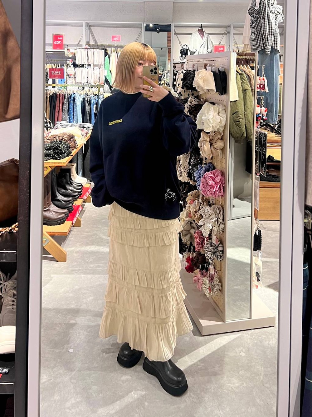 \ちぃかわspecial collaboration✨/ ローリーズファームとちぃかわのコラボアイテム‼︎ ちぃかわのスウェットとフリルスカートで、 甘めカジュアルコーデ🩵