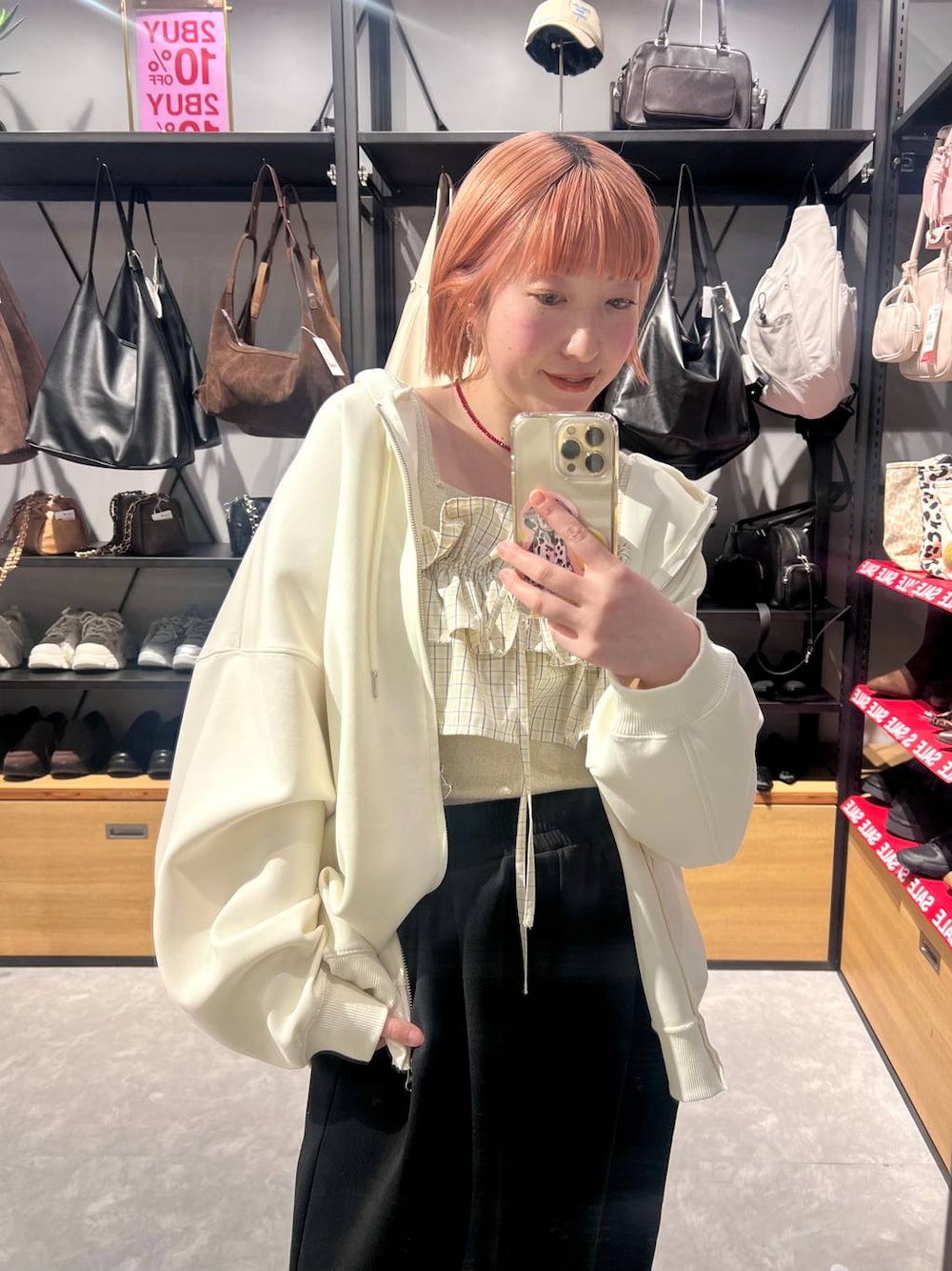 今週とっても大人気なZIPフーディ! ビスチェをインナーで着て、 シンプルすぎないコーデにしました🌼 ⭐各アイテムのおすすめポイント  ̄ ̄ ̄ ̄ ̄ ̄ ̄ ̄ ̄ ̄ ̄ ̄ ̄ ̄ ̄ ̄ ̄ 【フーディ】Fサイズ サラッとした生地で、 今の時期からすぐに使えるフーディ! 横幅がゆったりしているので、 ショート丈でも短すぎない丈感です◎ ワイドなボトムスと合わせたり、 スカートで甘めなコーデや、 シャツやキャミチュニックと合わせて 今年らしいレイヤードスタイルも楽しめます♡ → 【ビスチェ】Fサイズ フリルが大きめで存在感がある一枚! 物足りないなぁという時にも使えますし、 肩紐を外して腰履きすると、 ウエストフリルでも使えます♪ 同素材のシャツとセットでも着られますよ◎ 【スウェットパンツ】Fサイズ トレンドのコクーンシルエットのスウェットパンツ! 長めでずるっと履きたい方は、 Lサイズがオススメです! オールシーズン履いていただける生地で、 裏地がジャージのようにツルッとしているので、 肌に張り付かず、履きやすいです◎ ウエストのタックがあることで、 腰回りスッキリ見えしますよ♪ → ‥‥‥‥‥‥‥‥‥‥‥‥‥‥‥‥‥‥‥‥‥‥‥‥‥ ☆御殿場店スタッフのスタイリングはこちら! →、、 ☆Instagramでも、日常を更新しています♪ →