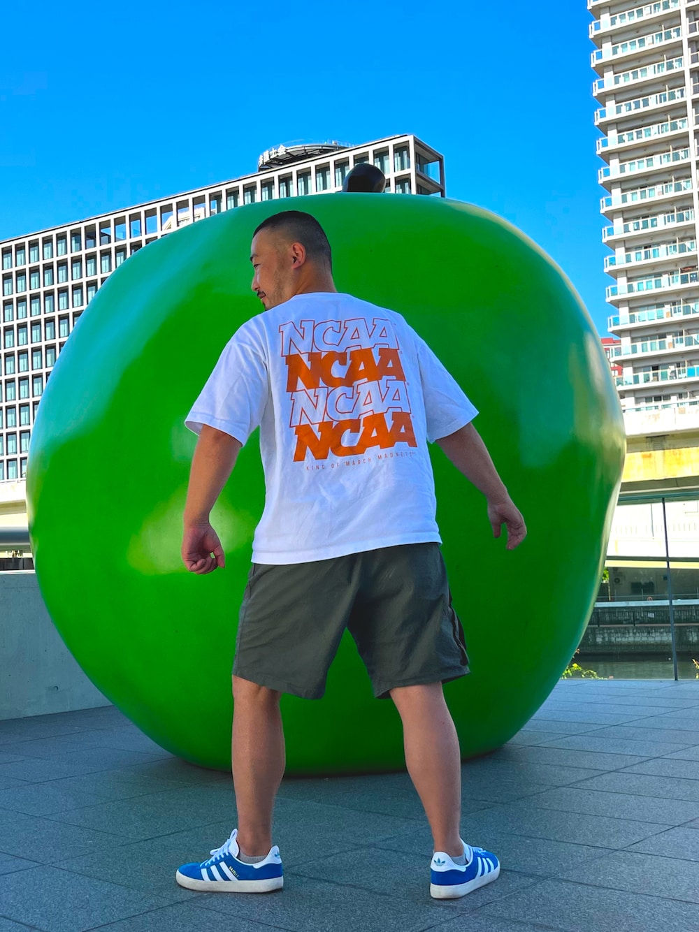 NCAAのロゴが派手可愛い ボディの形も裾が長くなくて、体格の良い人でもリラックスシルエットになるのでオススメです 着る人を選ばないTシャツ 胸はワンポイントのNCAAロゴのオレンジ刺繍です