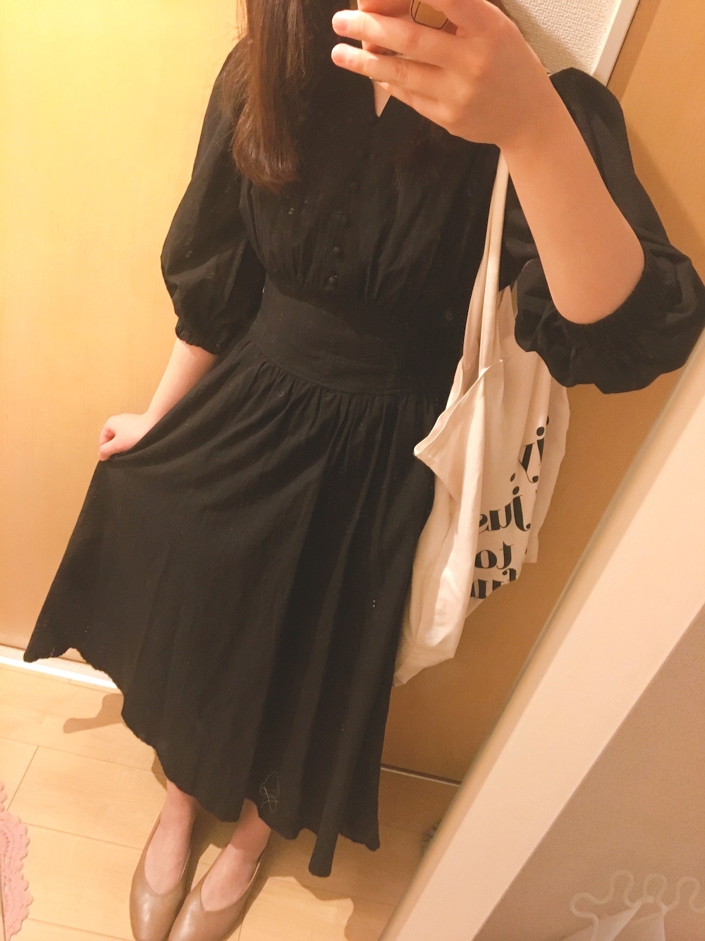 hana のワンピース「ウエストカッティングボリュームスリーブワンピース」を使ったコーディネート