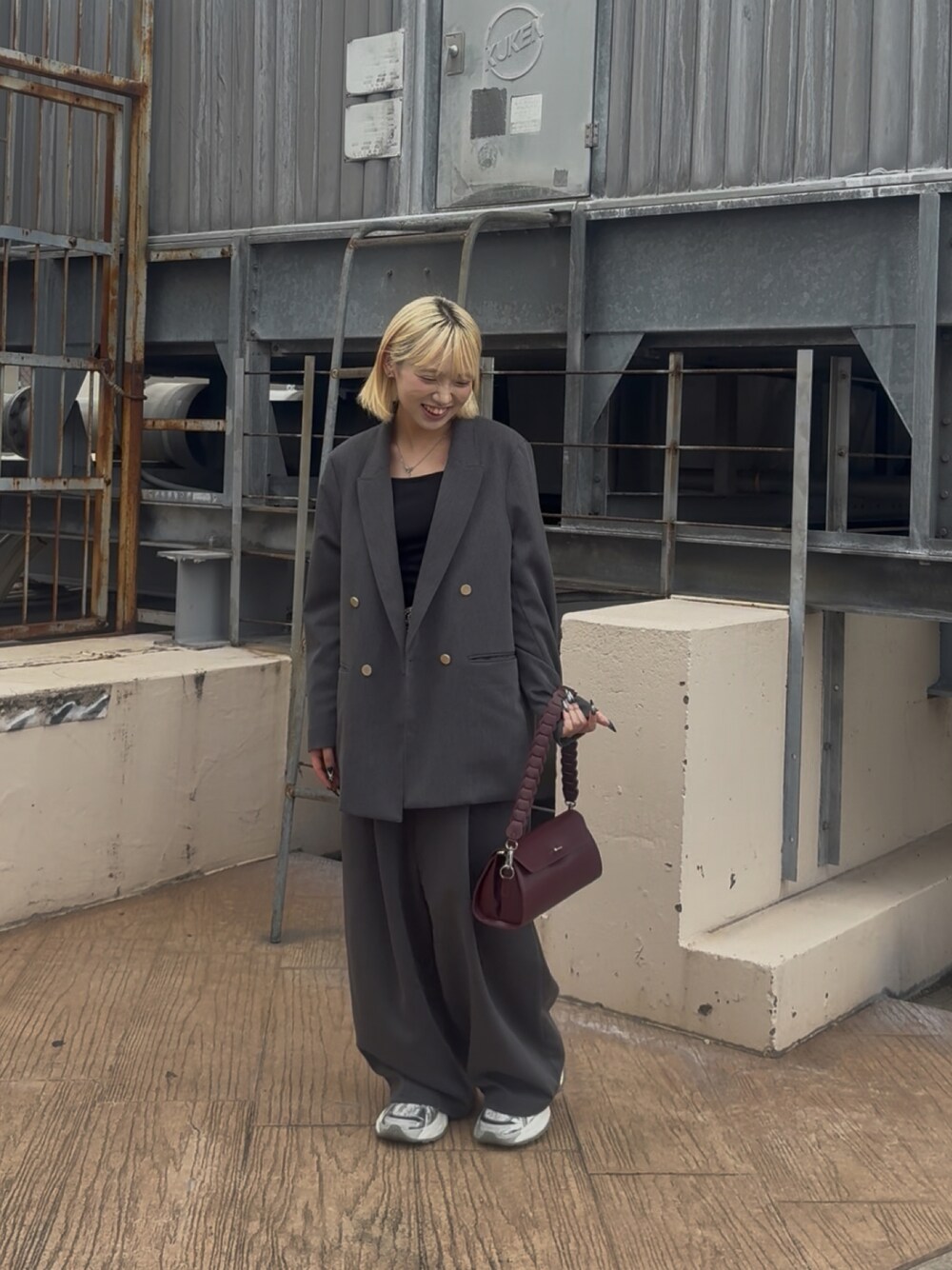 新作のグランパバギースラックスは、ユニセックスのゆるシルエットが魅力の一着。 軽やかなポリエステルとレーヨンを使用し、ウール調の上品な質感を実現しました。 ポリウレタンを少量加えることで、程よいハリ感と滑らかな表面感を備え、どんなシーンでもスタイリッシュに決まります。 このスラックスは、夏物としても最適。 風通しが良く、動きやすく、リラックスした着心地を提供します。 さらに、低身長コーデにも対応し、様々な体型の方にフィット。 レディースにもメンズにもおすすめで、デイリーユースにもぴったりです. コーディネートの幅を広げるリラックスしたシルエットで、カジュアルからクールまで多彩なスタイルを楽しめます。