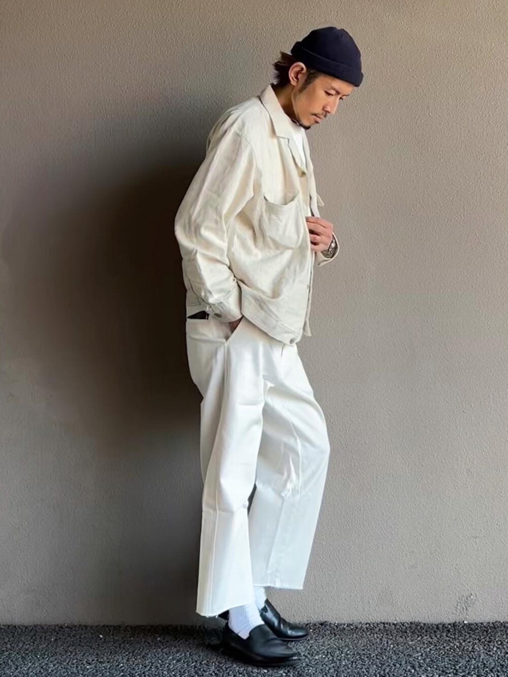 オールホワイトのワントーンコーデ。 暑く見えないようにリネンのシャツです。 Instagramのイイね&フォローお待ちしてます☕️
