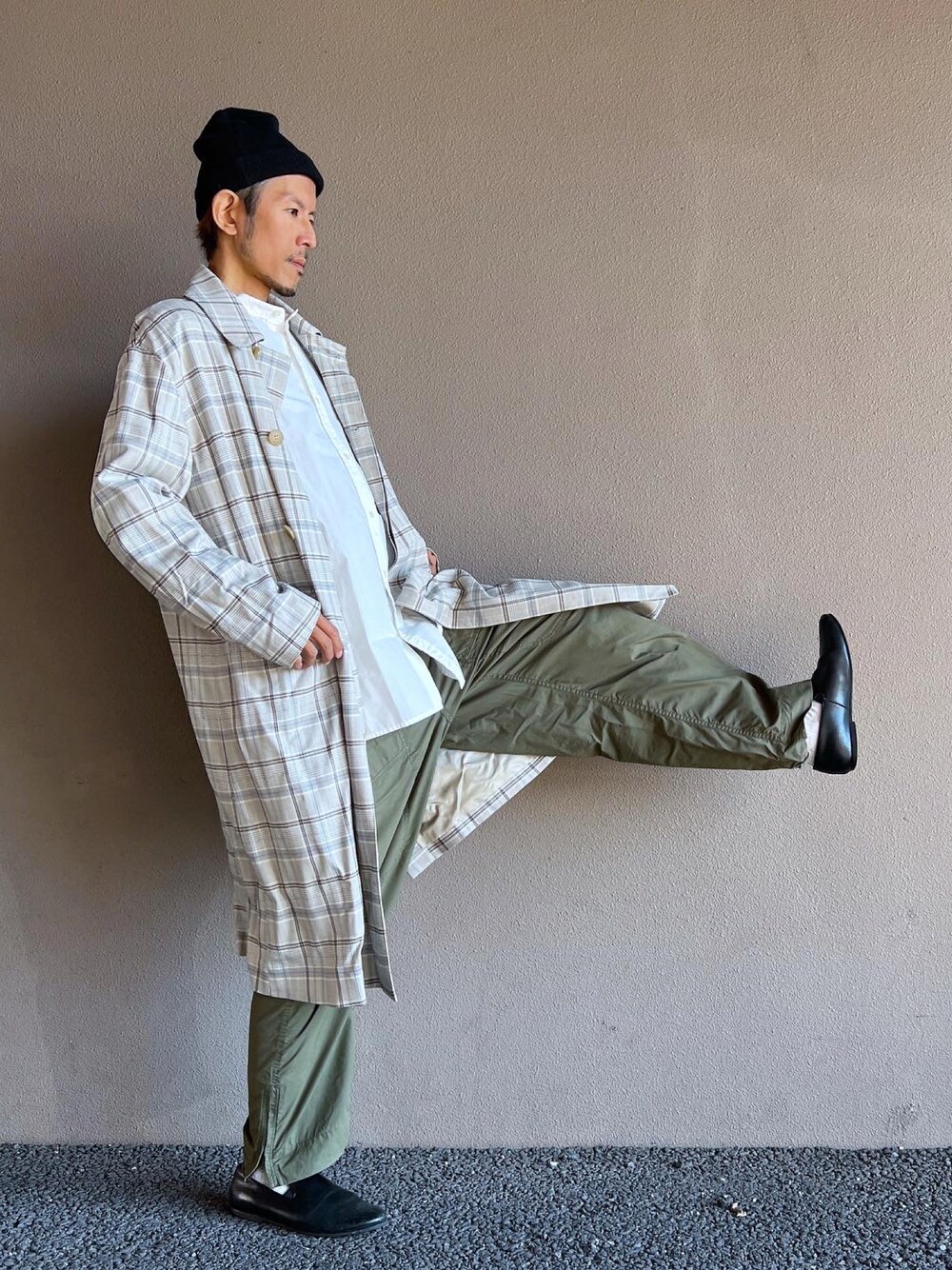 膝下まであるロングコート。 ロングコートをよく着ます。 白ベースのチェックコートも王道カラーで。 やる気ないケンカキック Instagramのフォロー&イイねお待ちしてます☕️