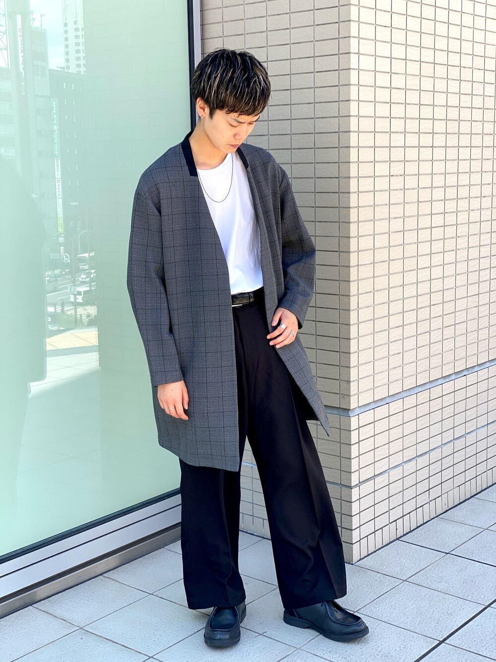 kitaura(tk.TAKEO KIKUCHI)のノーカラージャケット「360度ストレッチノーカラー長丈ジャケット」を使ったコーディネート
