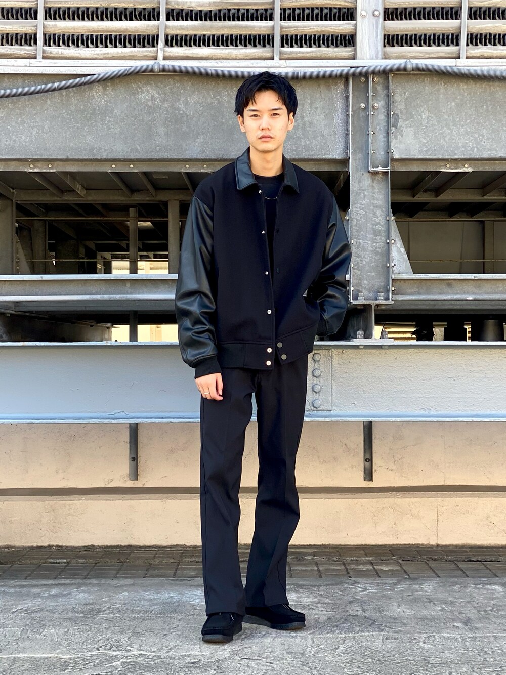 kitaura(tk.TAKEO KIKUCHI)のブルゾン「◆テックウールメルトン×シンセティックレザースタジャン」を使ったコーディネート
