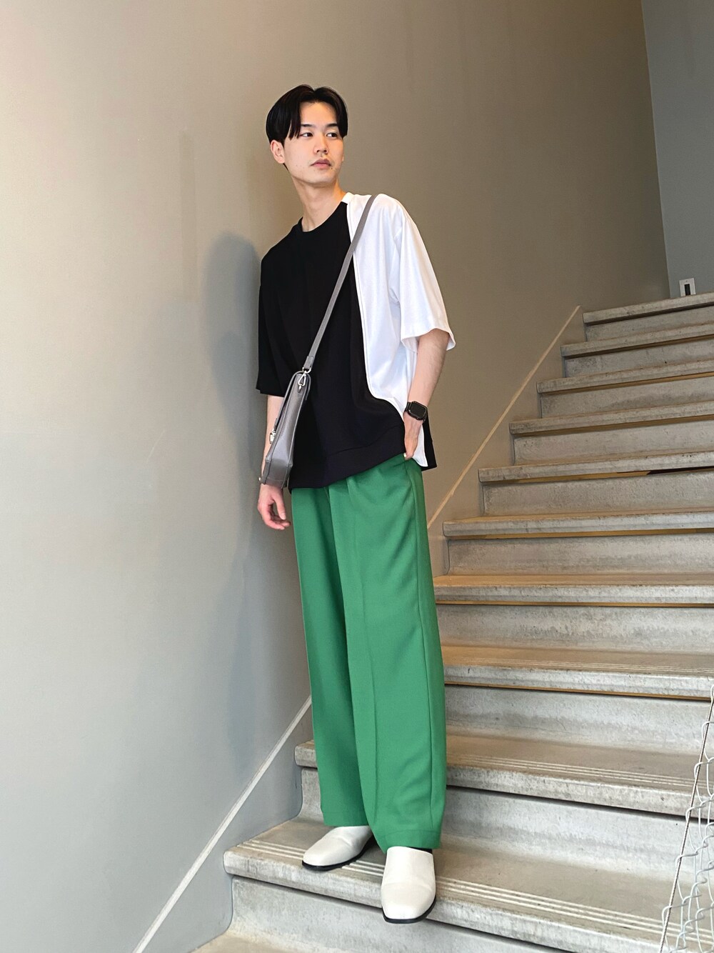 こんにちは😃 カラーパンツを使ったインパクトある春コーデのご紹介です! 全体的にゆったりとしたシルエットにする事でリラクシングな印象と涼しげな見え方に。 カラーはシンプルになりすぎないようにグリーンを合わせてトレンド感を演出してみました!