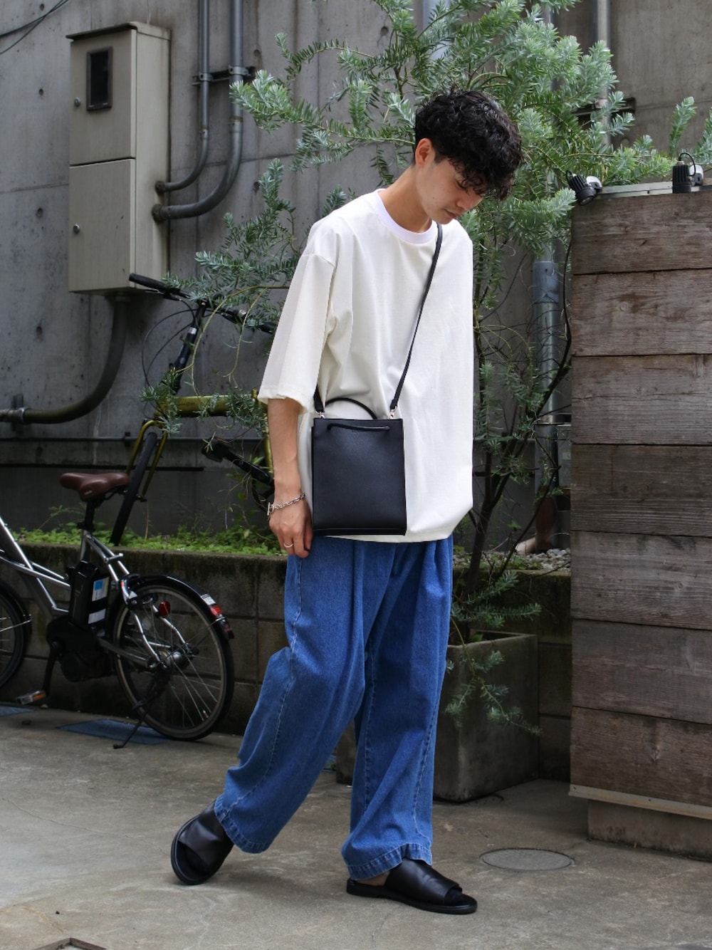 白とブルーでスッキリ夏コーデ! 白Tデニムパンツに黒のバッグをプラスする事でカジュアルになりすぎずキレイ目にまとめてくれます。 バッグは荷物入れではなくアクセサリー感覚で使うのがオススメ!