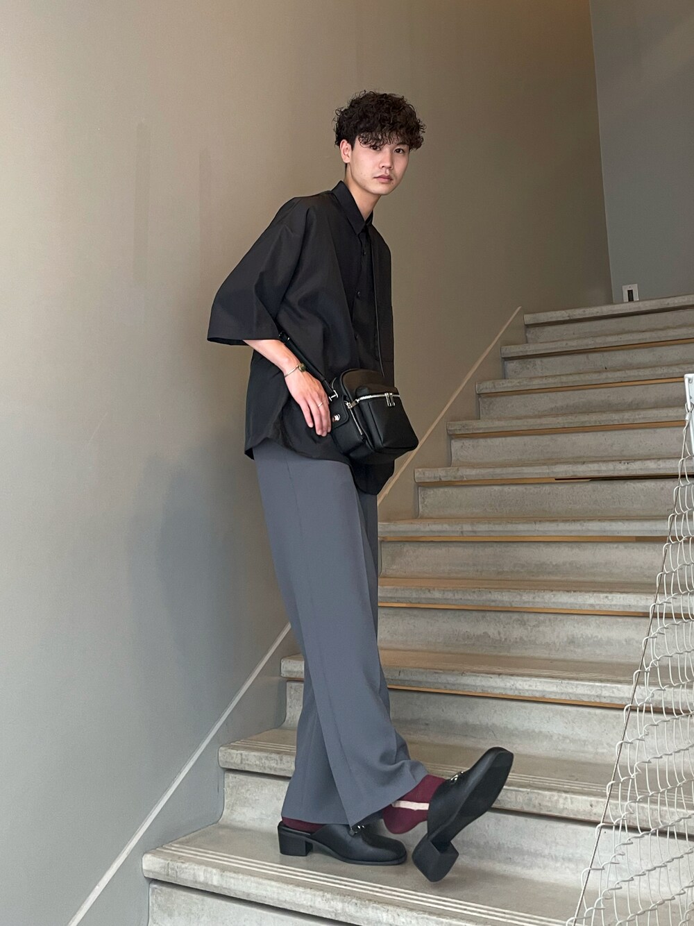 可愛らしいバッグを使った夏スタイル! 全体的にダークトーンで統一して、大人っぽく仕上げてみました。 バッグはぷっくりしててかわいくて、それでいて容量も結構あり使い勝手もいいです!!