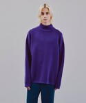 オーバーシルエットのPコートを使ったスタイリング。 インナーにパープルのニットを使ってインパクトを出しました。 ゆったりとした全体のシルエットでモードな雰囲気を演出してみました。