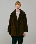 オーバーシルエットのピーコートスタイル。 トレンド感とモードな印象のアイテム。 インナーにデザインシャツを使い、遊び心あるスタイリングにしました。 是非参考にしてみてください!