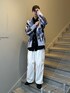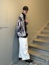 カーディガンを使った春スタイル。 インナーとパンツをシンプルにモノトーンにし、カーディガンの柄を活かしたスタイルです。 パンツを太めにして全体のバランスを整えると綺麗に見えるのでおすすめです!