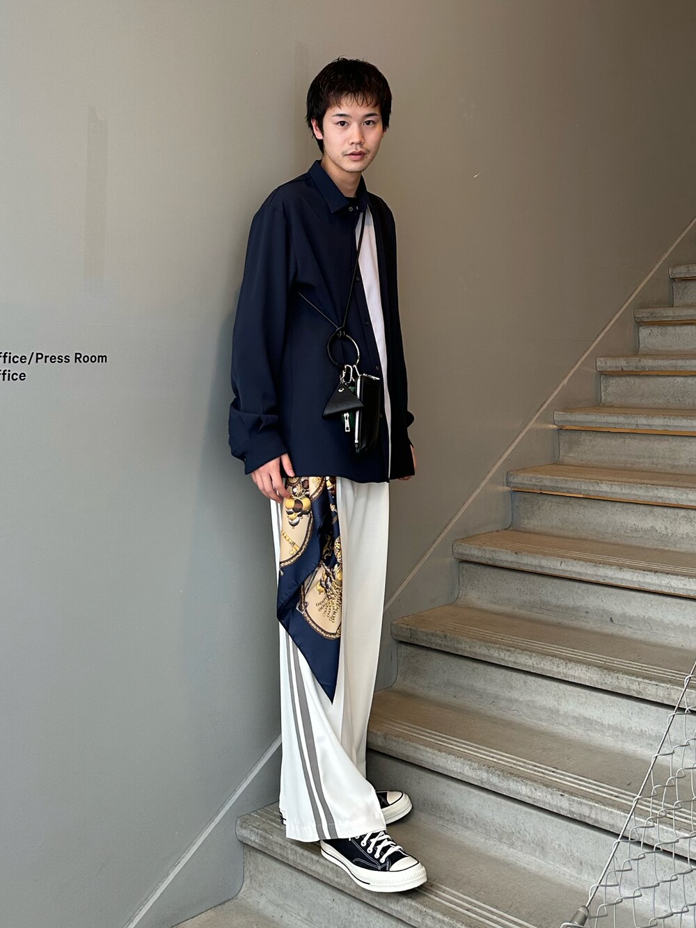 スカーフで差別化を シャツとワイドパンツを合わせてラフにきれいな印象にしました。 スカーフをシャツの色と合わせる事でより統一感が生まれるのでおすすめです! 参考にしてみてください!