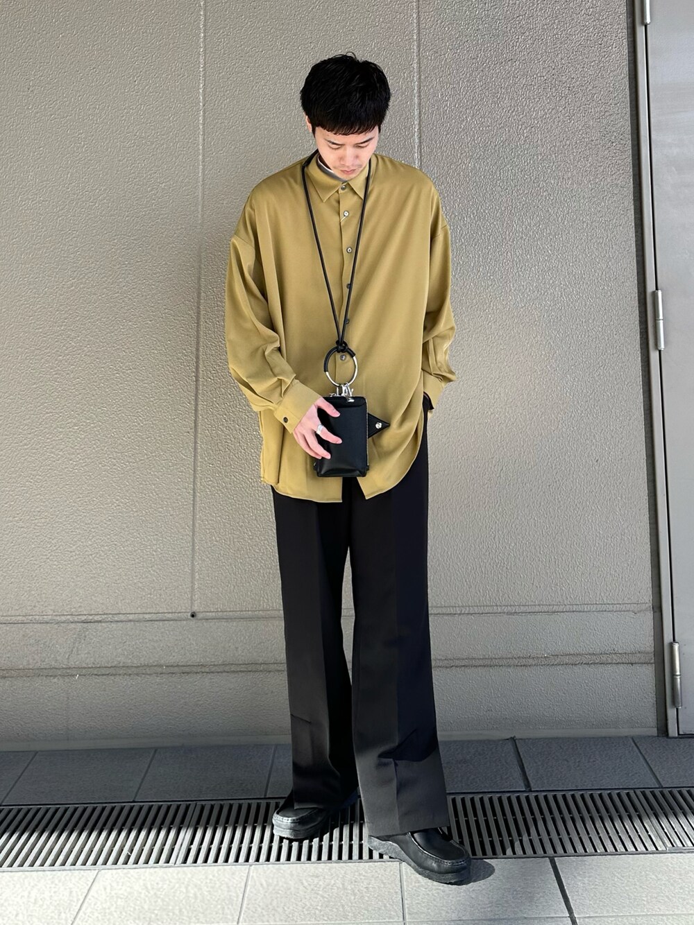 シンプルにシャツとワイドパンツを合わせて ショルダーバッグでアクセントにした春スタイル。 シンプルでキレイなスタイルですが、 普通になりすぎないようにしっかりとトレンドのバッグを加えてアクセントにしました。 カラーなどでおしゃれさを演出するのもかっこいいですが、形でおしゃれをするのもおすすめです!!