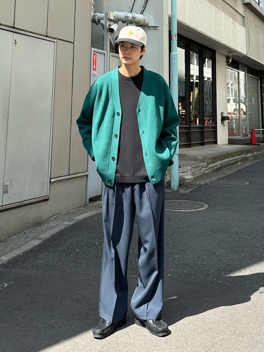カーディガンスタイル。 春にはやはりカーディガンですよね! 着心地がとても軽く、発色がいいのがこのカーディガンの特徴です! 柔らかな今っぽいスタイルを演出できます! 是非チェックしてみてください!