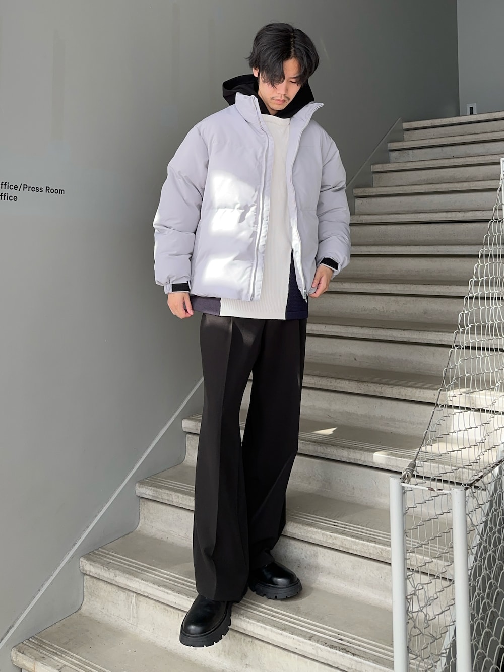 軽い着心地が特徴的なダウンジャケットが登場! 値段もお手頃でかつおしゃれに見えるのでこれ一枚あればこれからの真冬便利です! インナーパーカーでラフに、ただパンツはスラックスで上品にまとめてみました!