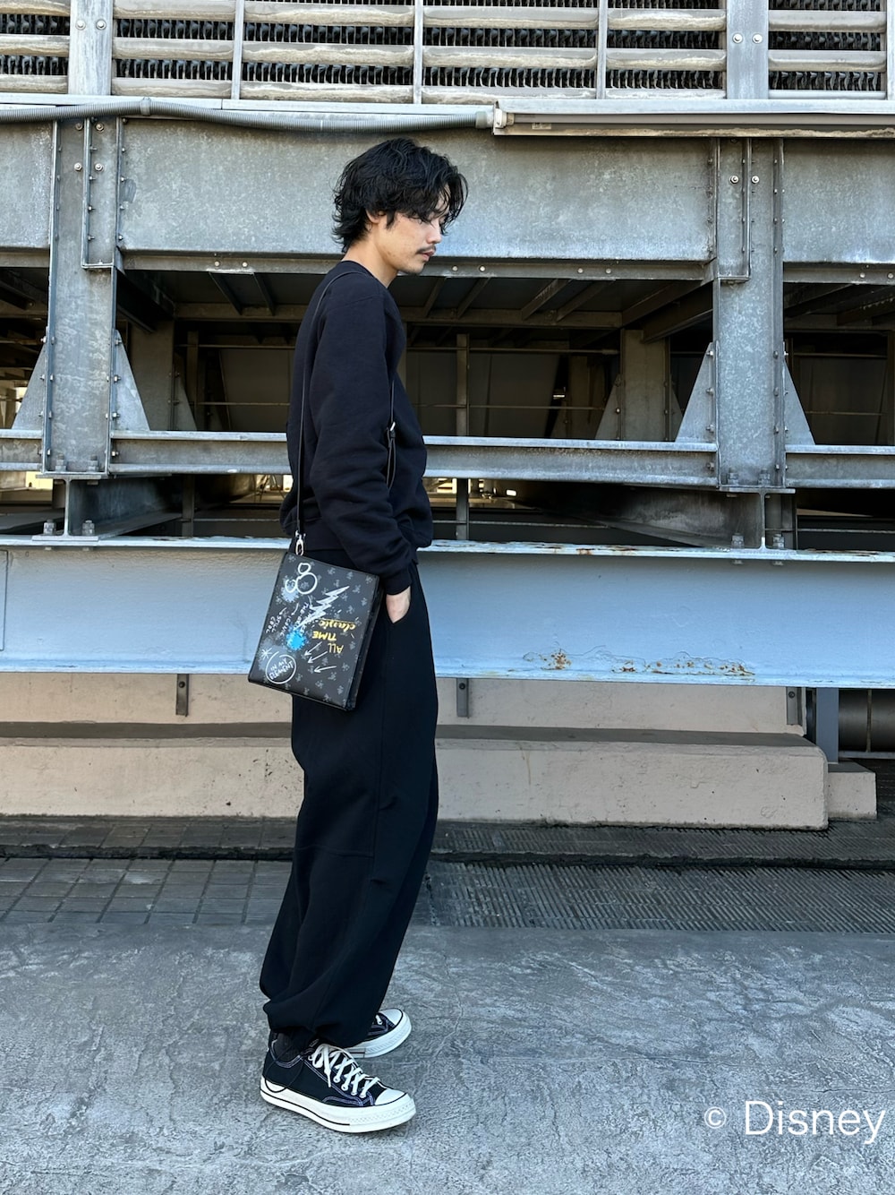 ディズニーカプセルコレクション第3弾!! バッグを使ってコーデしてみました! オールブラックに、デザインバッグを入れる事で際立ちアクセントになります! 遊び心のあるデザインが可愛らしくシンプルコーデにピッタリです!