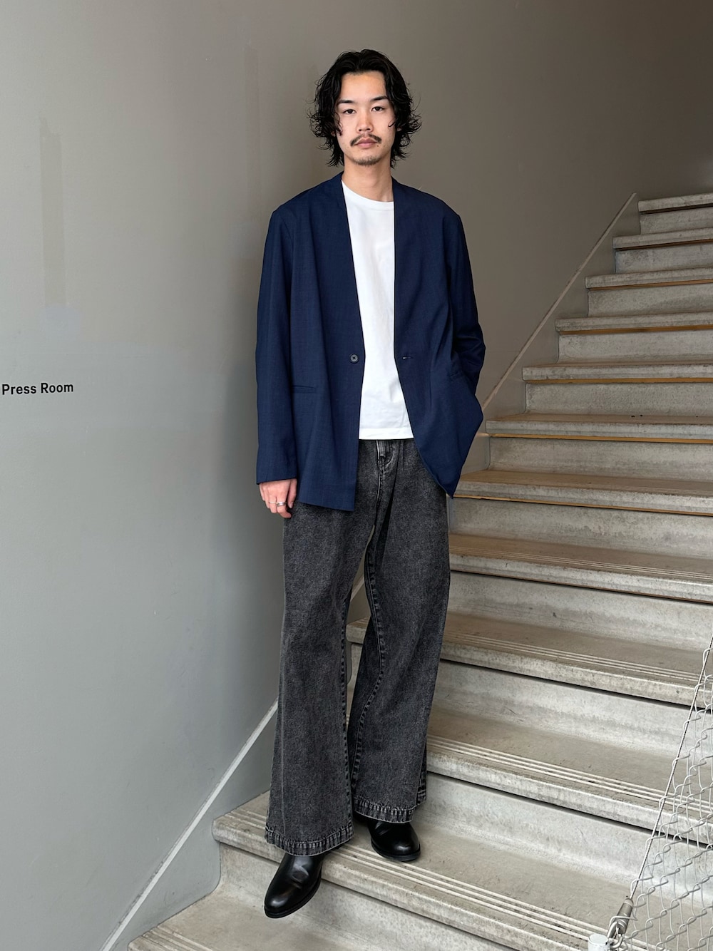 セットアップの上だけ使った春スタイル。 ヴィンテージ感のあるデニムパンツに合わせることでカジュアルダウンさせて今っぽい印象に仕上げました!