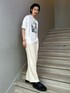 白で統一した夏コーデ! 爽やかですが、パンツをスラックスにすることで綺麗め要素が入り大人っぽい仕上がりになりましたー! 足元はサンダルで季節感を演出しながら都会風な印象になるようにシャークソールにしました!