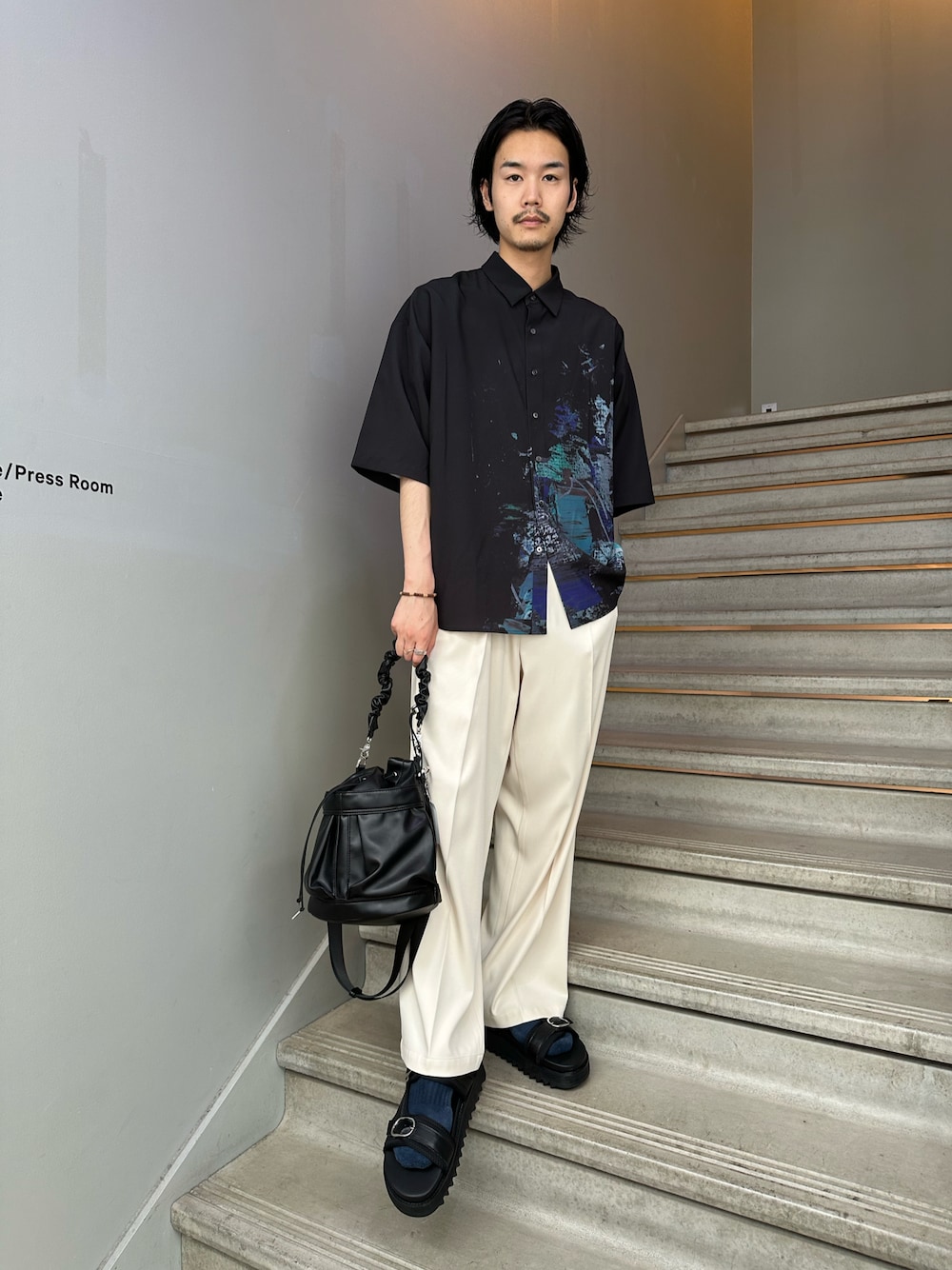 さらっとした生地感のアイテムで揃えた綺麗めスタイル。 モノトーンに仕上げたことで引き締まった印象になります! またバッグを持つことでよりファッショナブルになり都会っぽい印象です!