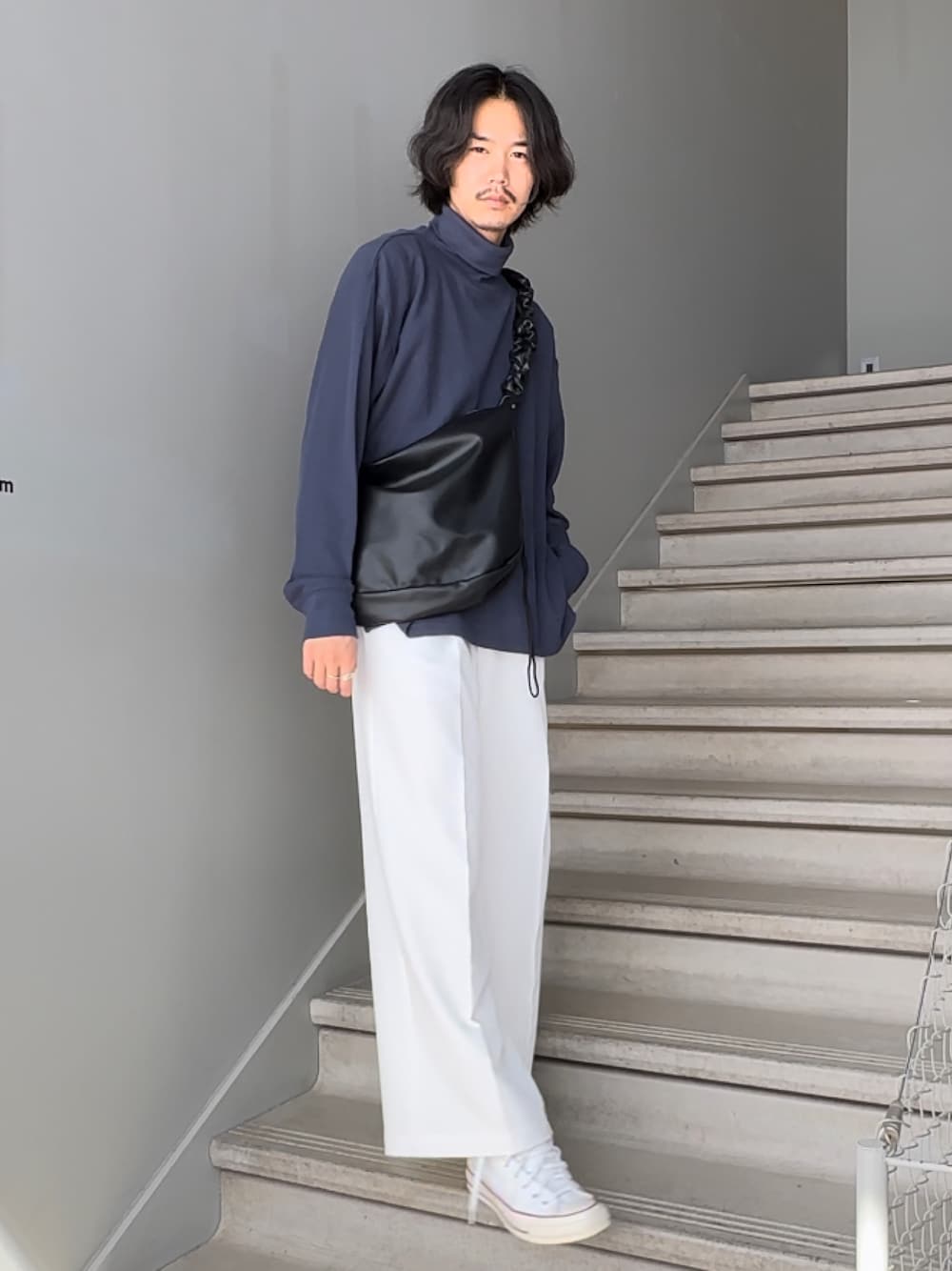 ラフなスタイルにバッグを持ちファッショなブルに仕上げました!