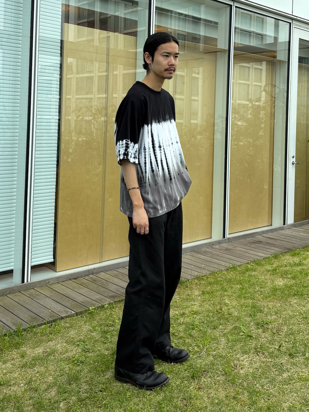 夏色たっぷりな1着! シンプルにブラックパンツで合わせてまとまりのある印象に! こなれた印象に仕上がるので夏にはおすすめのTシャツです!