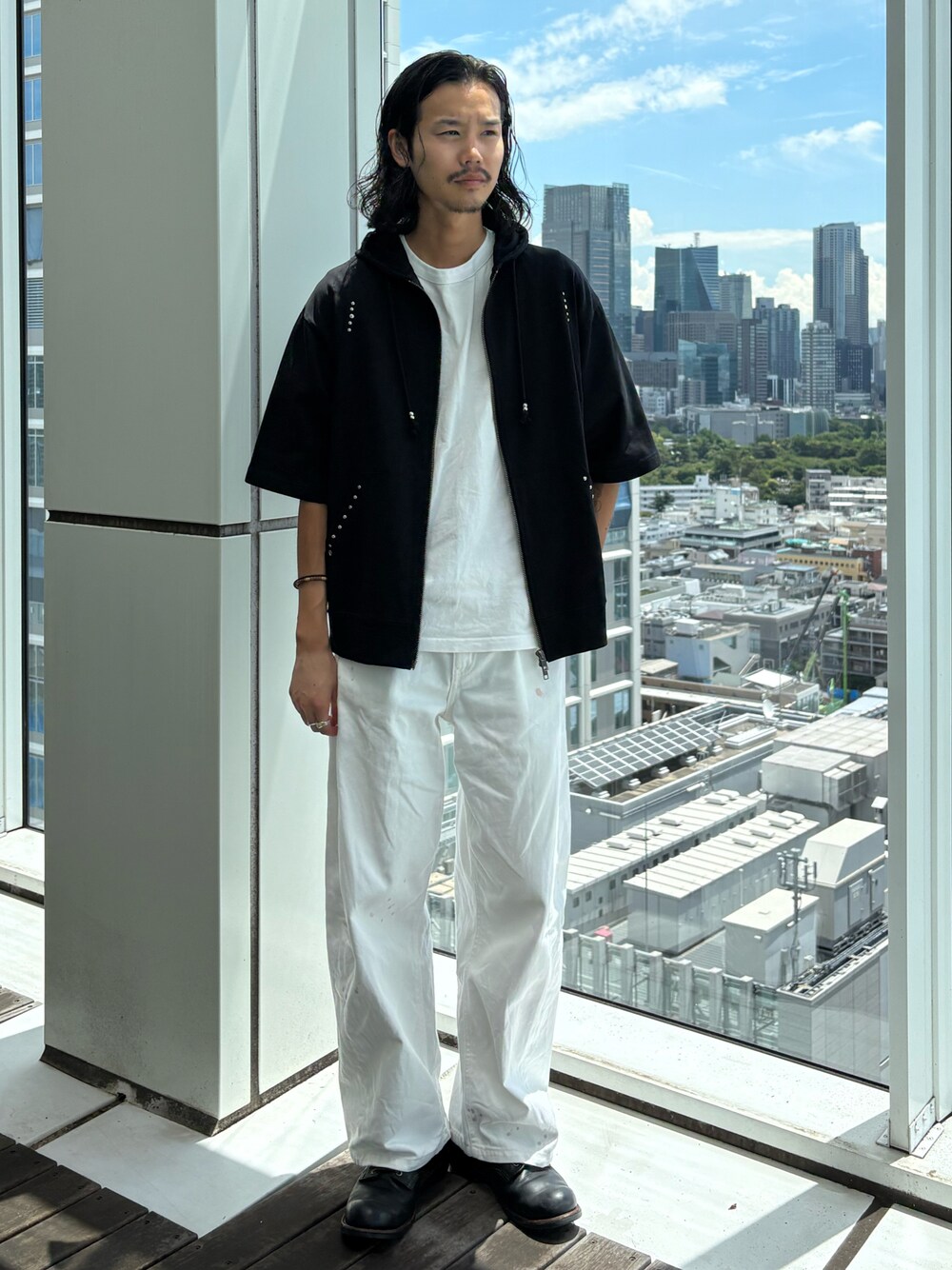 kitaura(tk.TAKEO KIKUCHI)のパーカー「スタッズ ダブルZIPパーカ」を使ったコーディネート