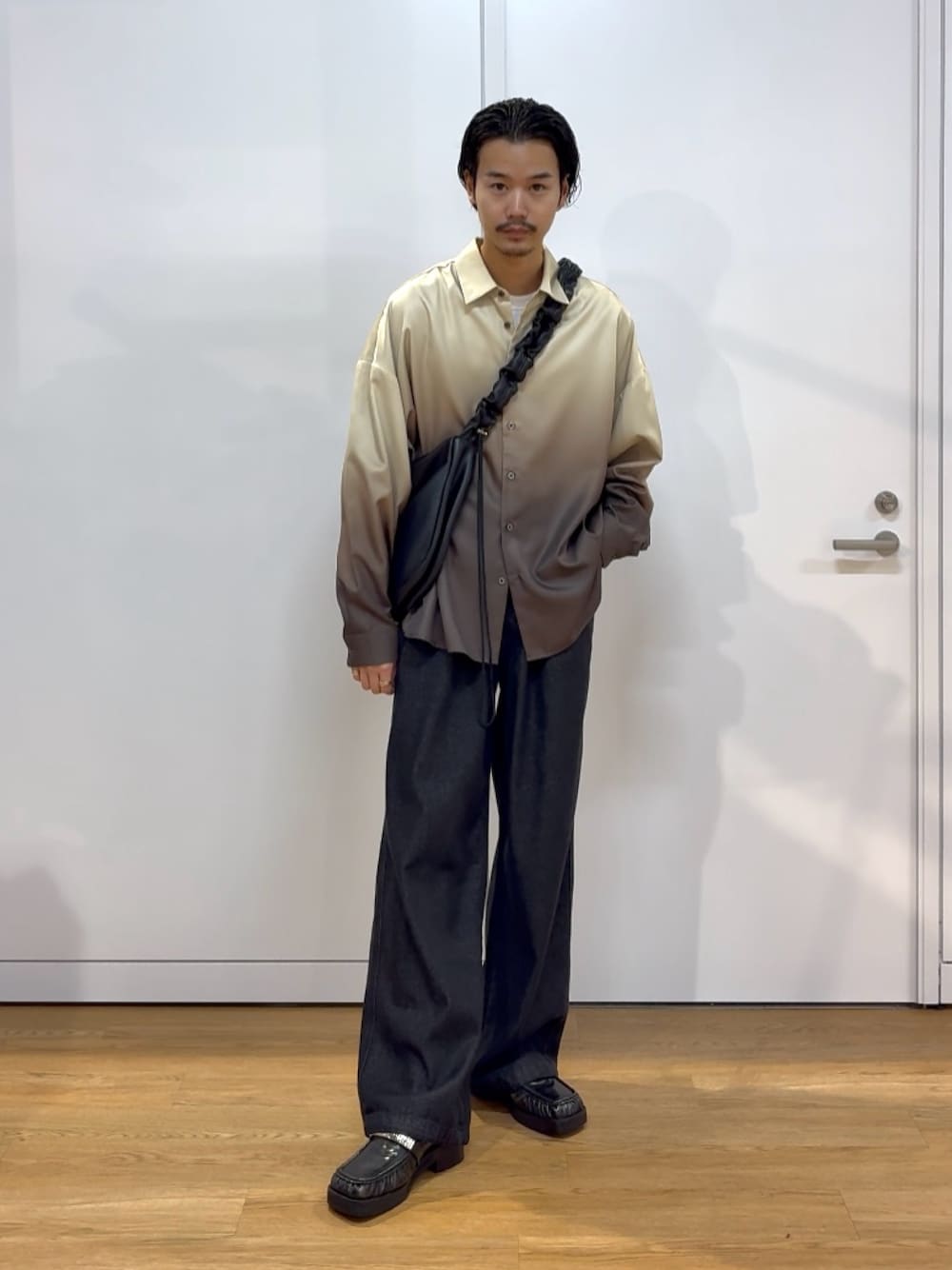 グラデーションが他にはない雰囲気を醸し出してくれる秋コーデ! トレンドのワイドデニムと合わせて全体がまとまるようにしてみました!