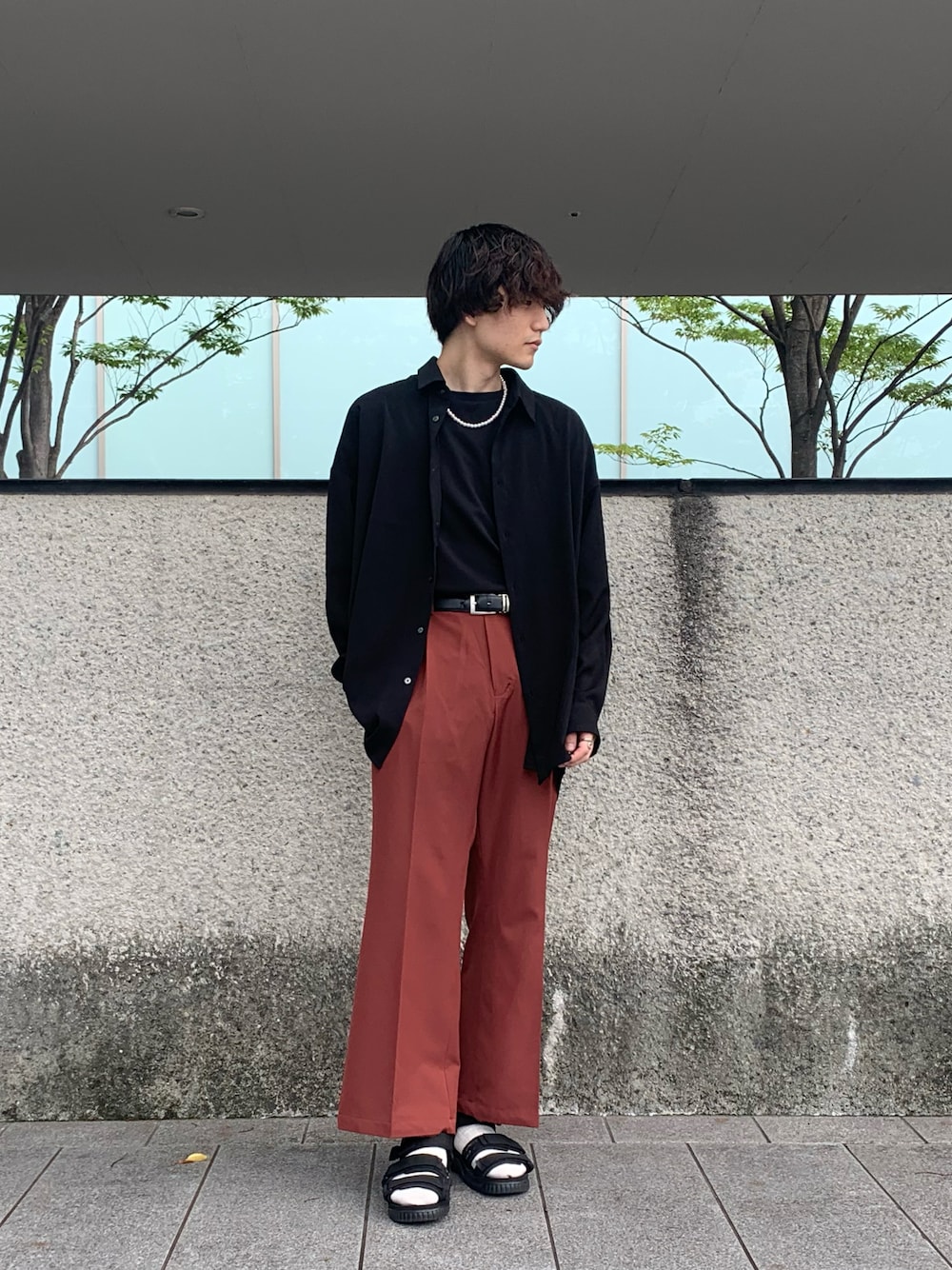 赤色を使った秋コーデのご紹介です。 シャツは大きめに作られているのでラフな雰囲気を作ることができます! 是非参考にしてみてくださいね!