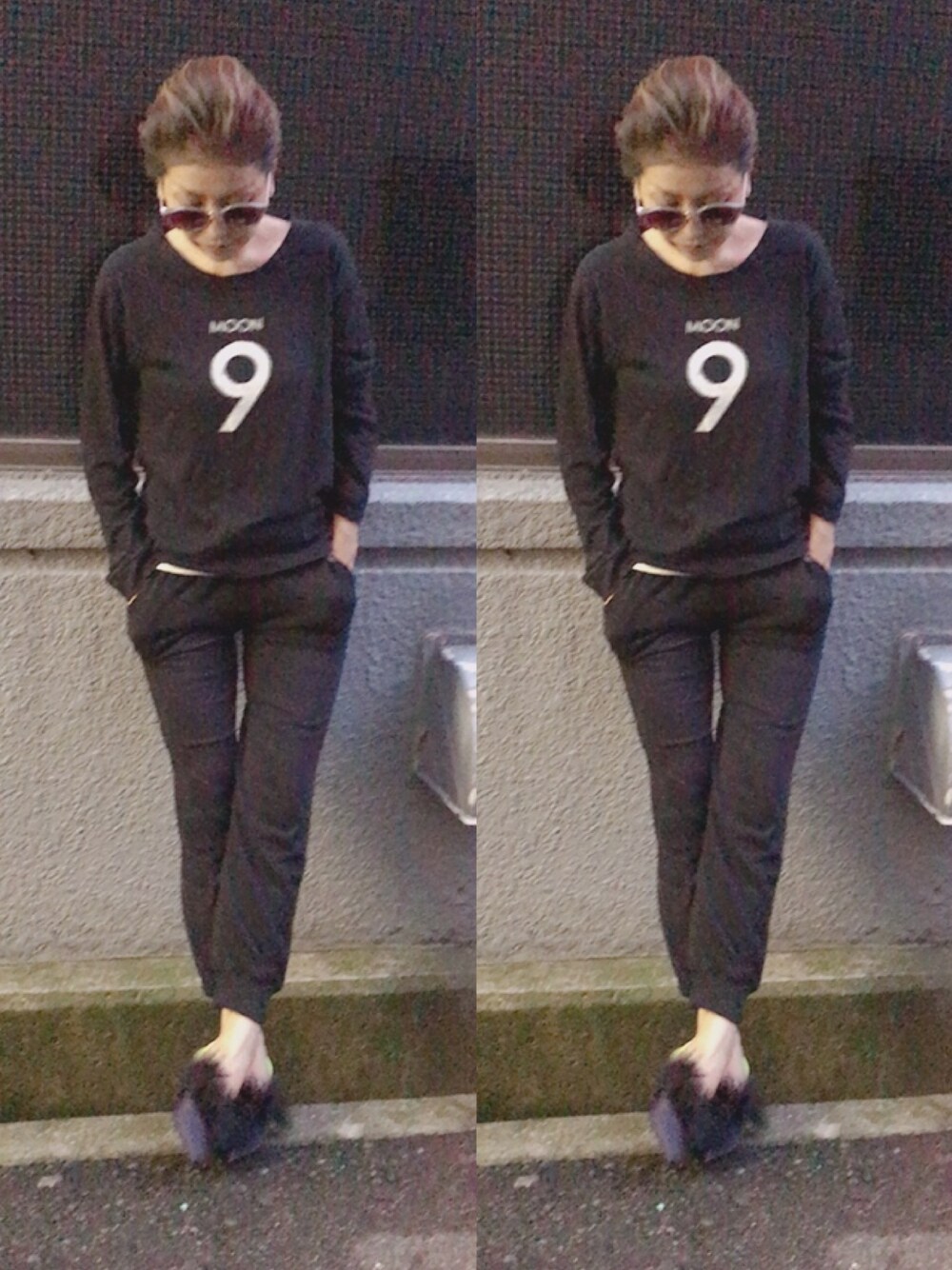 今晩は〜🌠 久々の投稿✨✨ ブラックコーデ❣️❣️ファーのパンプスの踵のストラップが蛍光色で、どうしても履きたくて無理矢理お出掛け取りつけたよ〜🤣🤣 季節の変わり目風邪などに気をつけて下さいね〜❤️❤️❤️