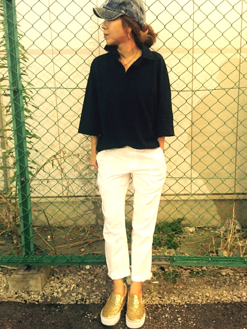いきなり夕方からのお出掛け😎BIGポロにチノパンしか思いつかなかったよぉ〜😅まぁカジュアルになり過ぎずgoldshoesで…夕方は気持ちイイから調度良かったぁ😘やっぱりラクラクコーデは最高💗😁
