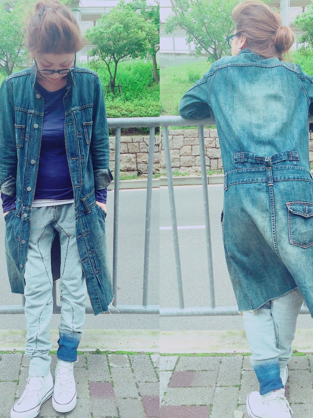 いつもイイね💖セーブありがとうございます🙏🏼とにかく全てが好きなコーデ😍💘古着のdenimジャケットはホントはワンピ😁💗サルエルパンツの色もコンバースのヴィンテージ感も大好きだぁ〜〜😍😘💖という訳で台風が近づいているみたいなので皆さんもお気をつけ下さいね〜💞
