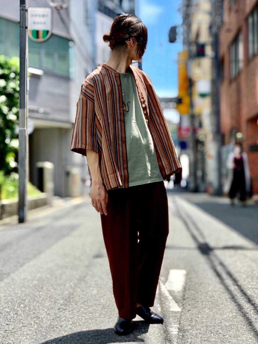閲覧ありがとうございます! まだまだ暑い日が続いていますね、 早く涼しくなってほしいという思いも込めて、 秋カラーでコーディネートしてみました♪ 全体的にブラウンやボルドーでまとめて、 カーキを軽く挿し色にしてます♪ 全体的に緩めなシルエットなので スマートな革靴で合わせるのもポイントです! ぜひ試してみてください♪