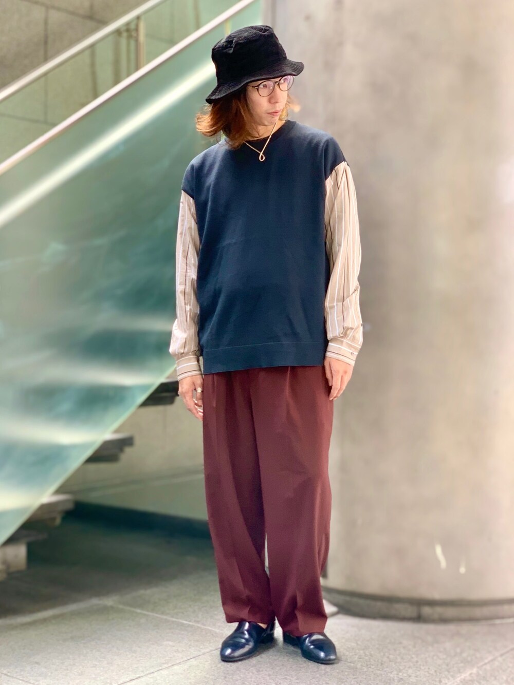 閲覧ありがとうございます♪ 今回は久しぶりに少しストリート寄りの コーディネートにしてみました♪ バケットハットやシルエットは少しストリート寄りですが、 ニット素材やボルドーのパンツを使用することで 上品さも併せ持つ組み合わせです! 秋カラーのダークグリーンとボルドーも相性がよく 一気に季節感を演出してくれます♪ ぜひ試してみてください!