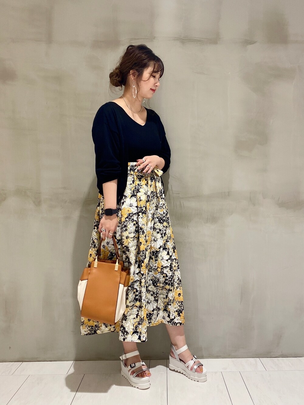 待ちに待った花柄ワンピースが入荷しました! 花柄が水彩画のようなタッチで清涼感があります! カーディガンはあえての同色チョイス☺︎ 花柄主役のサマーブラックコーデです♡