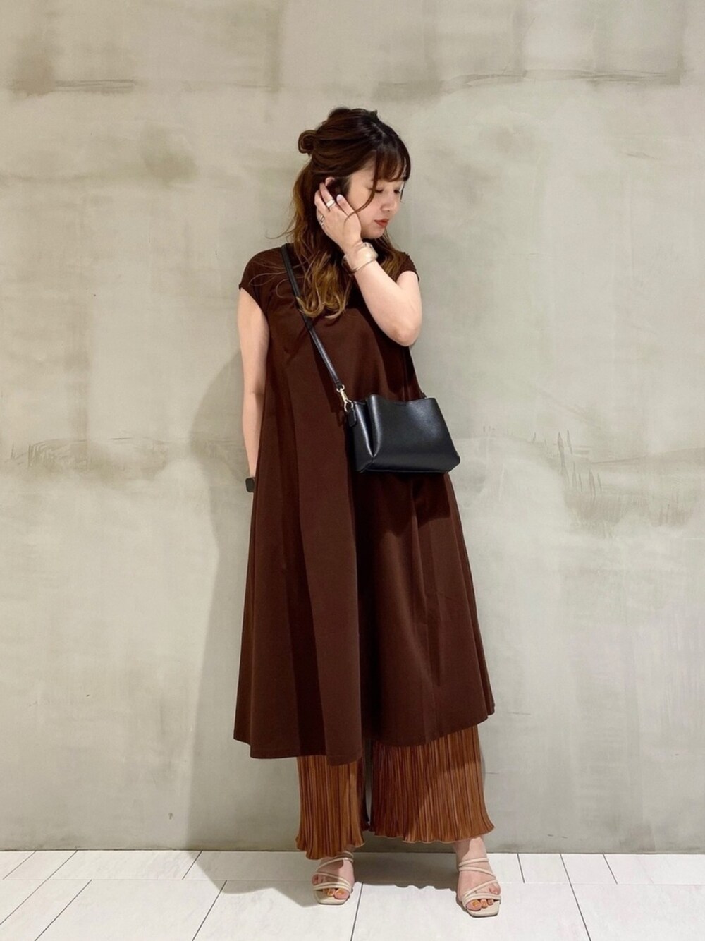 インスタライブ紹介アイテム☺︎ Tシャツワンピースを着回ししました! ブラックのコーデ過去投稿にあります▶︎▶︎ 真夏に向けてのリラックスコーデ! ラフ感はありながらボトムに光沢感のあるプリーツパンツで女性らしさプラスしました♡