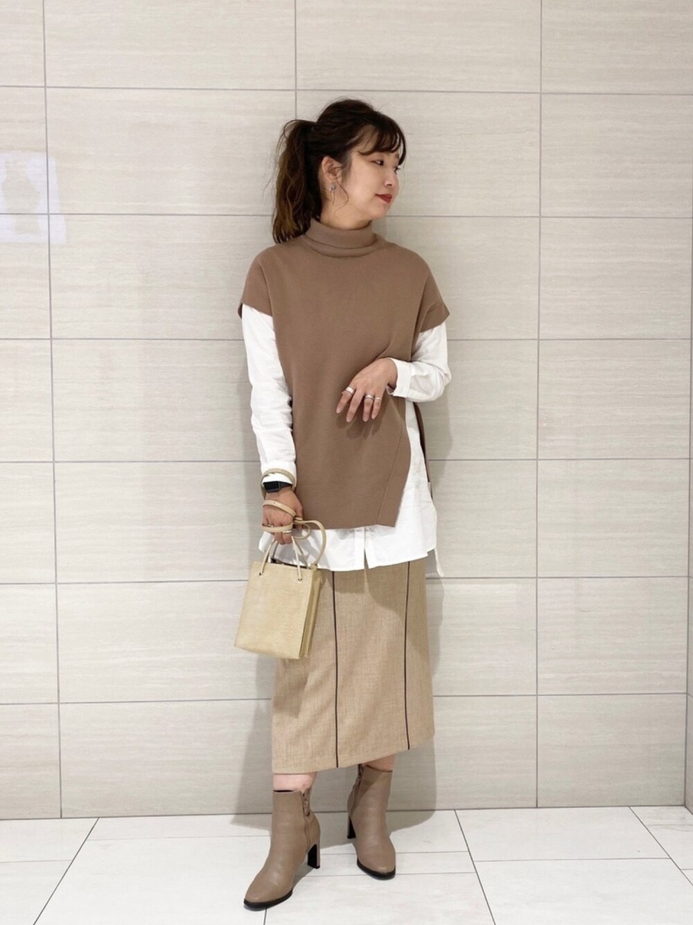 たかみな(LEPSIM パークプレイス大分)のベスト「ミラノリブタートルニットベスト916488」を使ったコーディネート