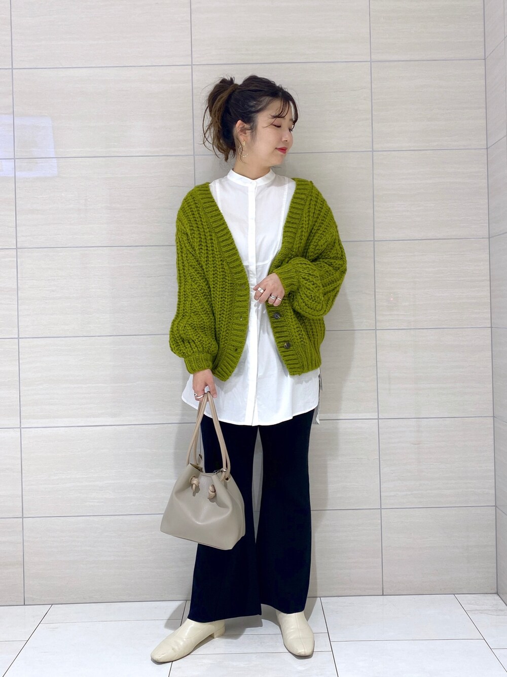 いつもご覧頂きありがとうございます! ピスタチオカラーのざっくりカーディガンコーデ☺︎ 着用感など詳しくはスタッフボードに記載してます! マイページのリンクから是非チェックしてくださいね♡