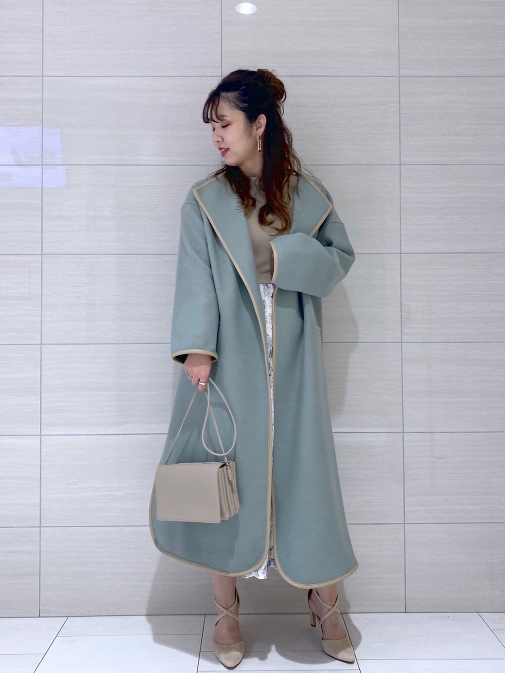 いつもご覧頂きありがとうございます! グリーンカラーのパイピングコートコーデ☺︎ 一つ前の投稿でアウター脱いだバージョンUPしています! 着用感など詳しくはスタッフボードに記載してます! マイページのリンクしから是非チェックして下さいね♡ .stスタッフボード【たかみな】で検索