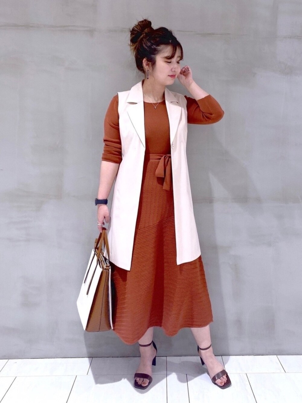 いつもご覧頂きありがとうございます! ニットワンピのワンポイントカラーコーデ☺︎ 着用感など詳しくはスタッフボードに記載してます! マイページのリンクから是非チェックしてくださいね♡ .stスタッフボード【たかみな】で検索
