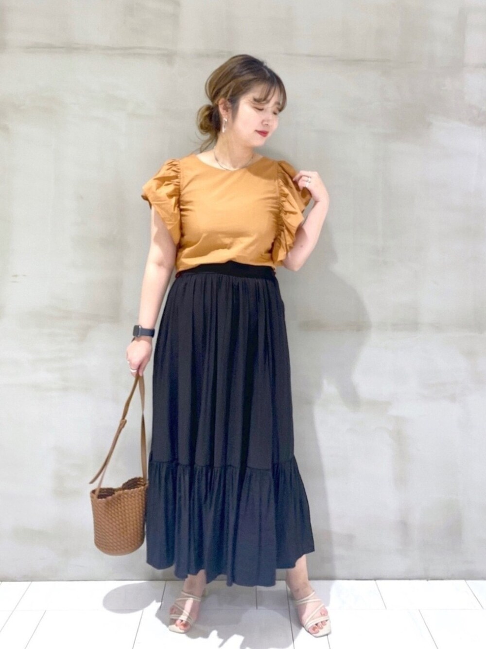 いつもご覧頂きありがとうございます! フリルブラウスのビタミンカラーコーデ☺︎ 着用感など詳しくはスタッフボードに記載してます! マイページのリンクから是非チェックしてくださいね♡ .stスタッフボード【たかみな】で検索