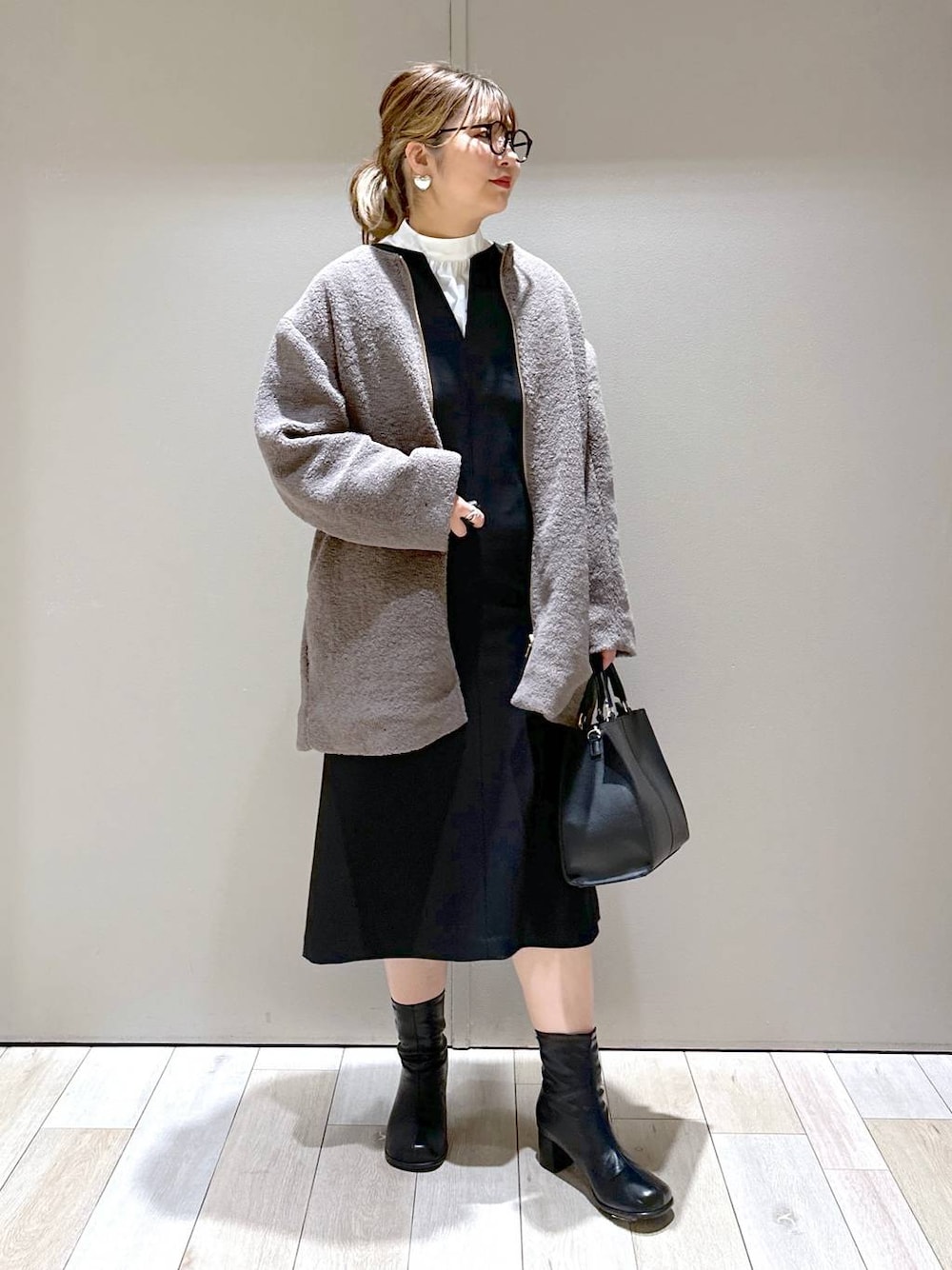 たかみな(LEPSIM パークプレイス大分)のノーカラーコート「ライトボアミドルコート 961528」を使ったコーディネート