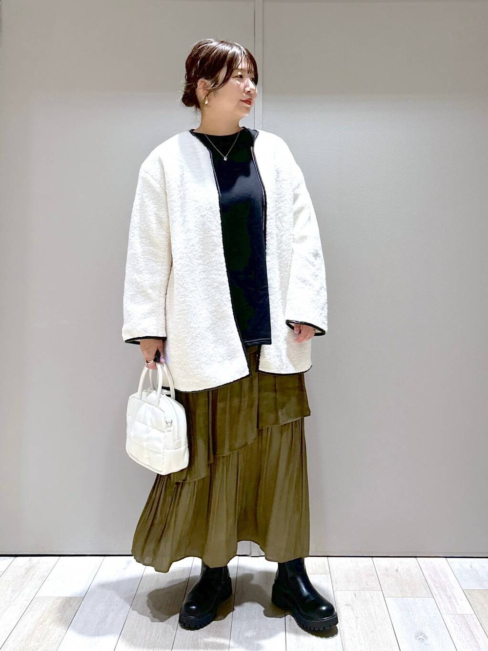 いつもご覧頂きありがとうございます! ボアコートコーデ☺︎ 冬らしい白ボアのコートにティアードスカートがかわいらしい印象に♡ 甘くなりすぎないように合わせたカラーをダークトーンにしてるのがポイント! ----------------------------------------- スタイリング毎日更新してます♡ いいなと思ったらフォロー&♡お気に入りお願いします☺︎ InstagramのプロフURLからインスタ画面のままご購入頂けると通知がきてとても励みになります!! 宜しければそちらから是非お願い致します! ▶︎大分店スタッフ: ▶︎Instagram: DMからご質問やご相談など気軽にお待ちしております♡ ▶︎WEAR: